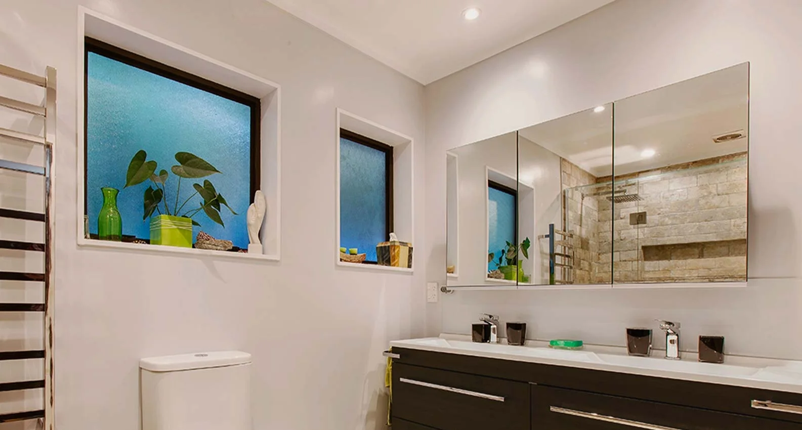 These clients did not want the standard bathroom. This couple wanted a shared his and her bathroom without the usual bathroom look. We used brick-look tiles for a double shower and a double vanity with extra storage. A very unique bathroom.
